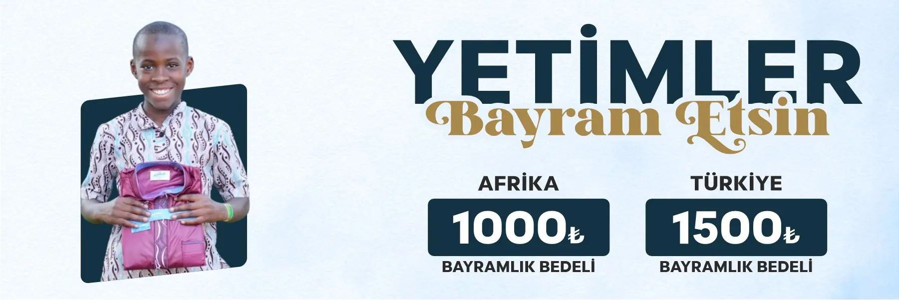 Yetimlerin, yüzünü güldürmek için başlattığımız bu projemiz sizlerin destekleri ile çocuklarımızın yüzünü güldürüyor. Siz de bir bayramlık bağışı yaparak yurtiçi ve Afrika’da bulunan yetim kardeşlerimizin yüzünü güldürebilirsiniz.